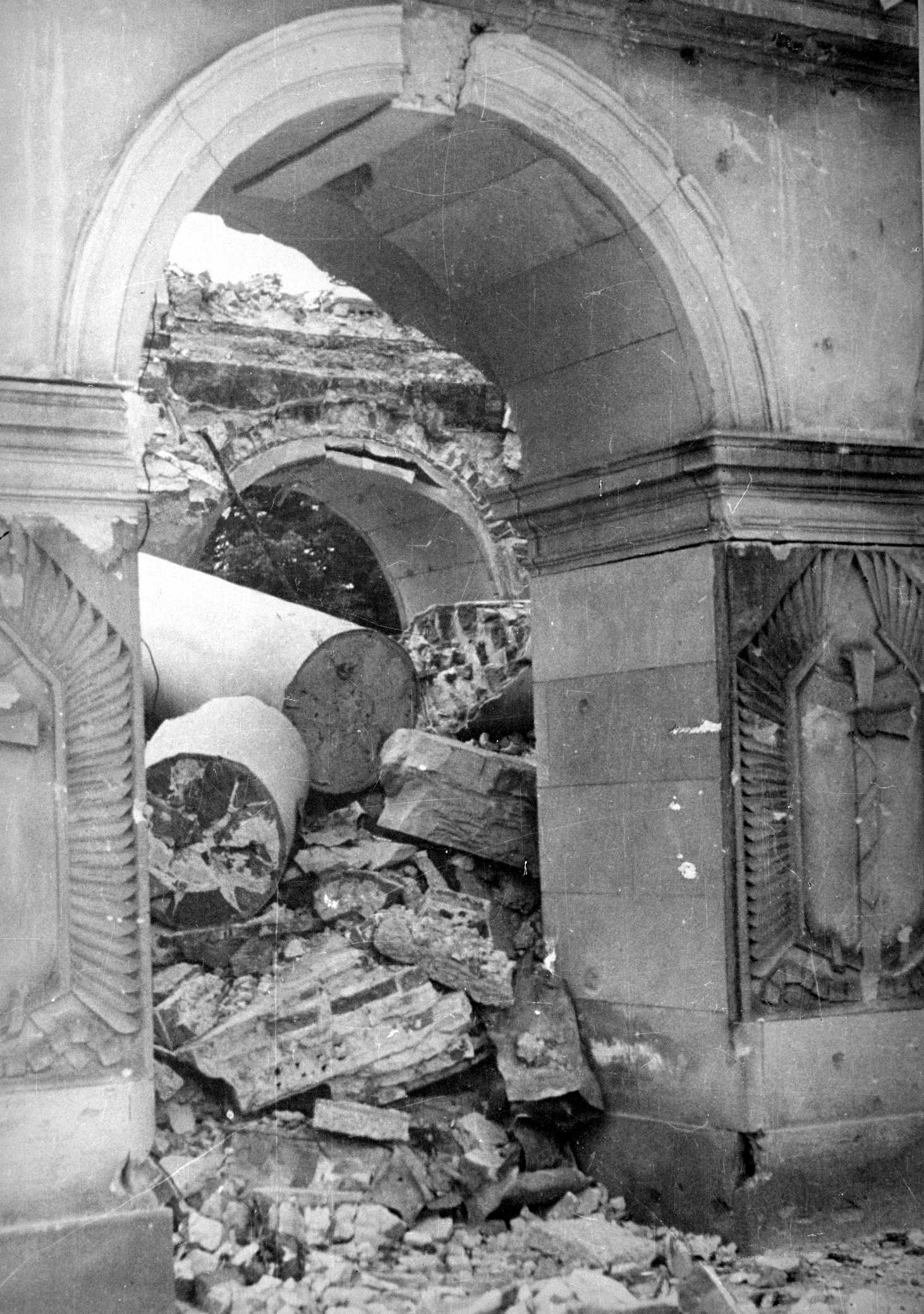 W trakcie odgruzowywania stwierdzono, że Niemcy wywiercili otwory także w ocalonych filarach, ale pomimo takiego przygotowania nie umieszczono w nich ładunków i nie wysadzono. Wskazuje to na celowe ich pozostawienie, nie wiadomo, dlaczego ich nie wysadzono.