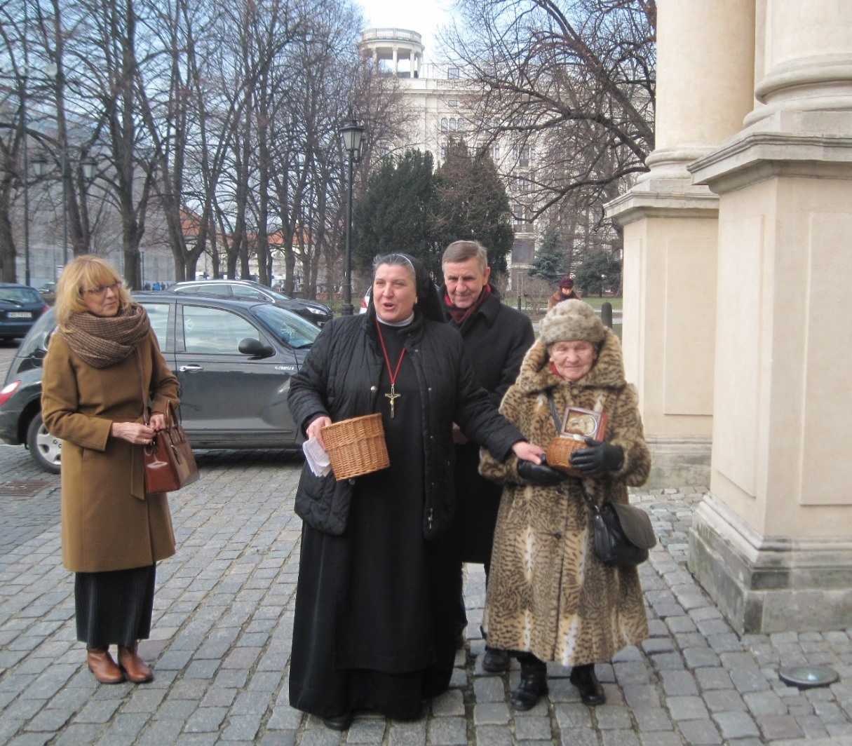 A po niedzielnych mszach, 28 lutego 2016, przed kościołem Sióstr Wizytek na Krakowskim Przedmieściu, wolontariusze, wraz z siostrą Michaelą, oczekiwali ofiarodawców.