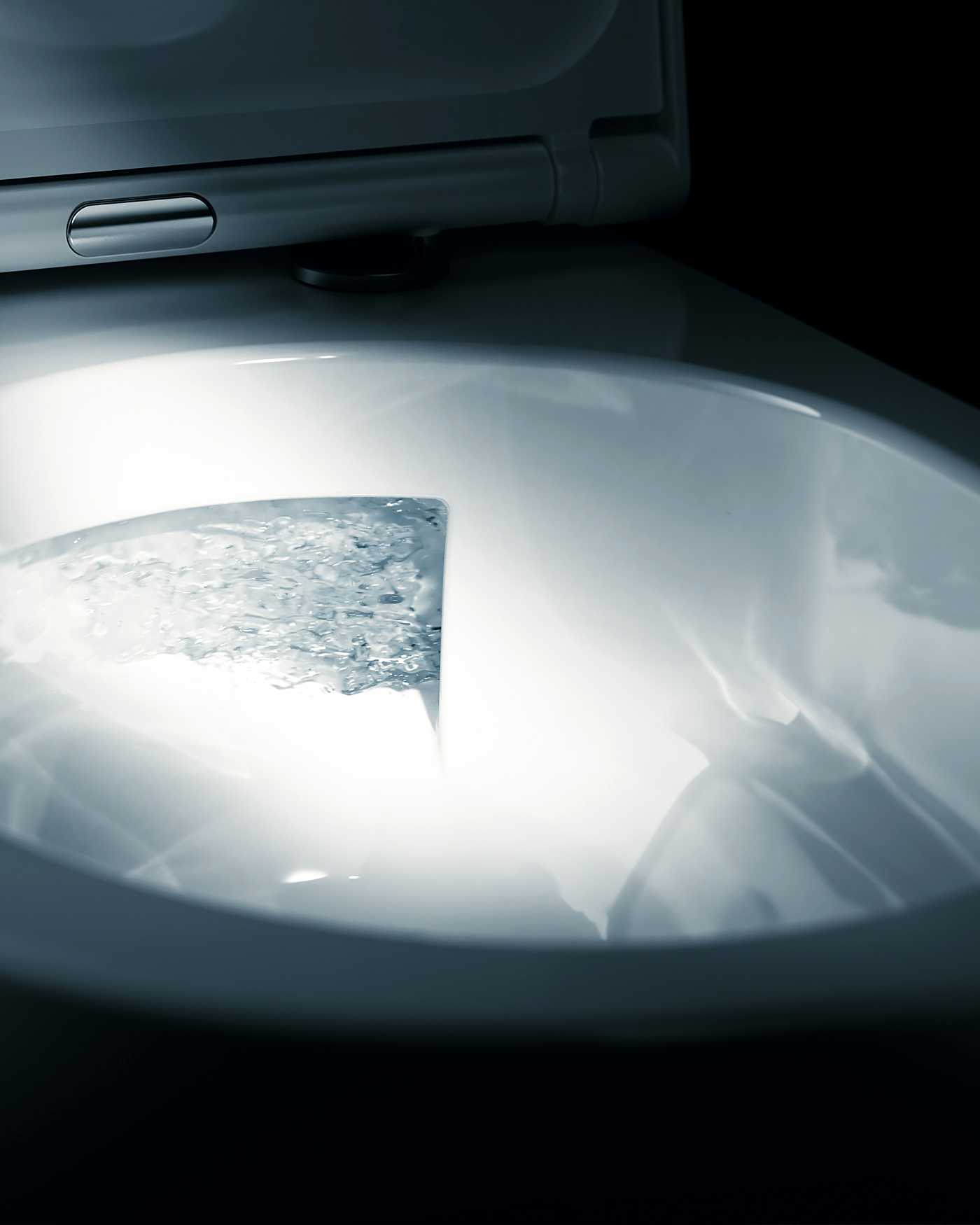 - intensywne, pełne spłukiwanie bez rozchlapywania wody;