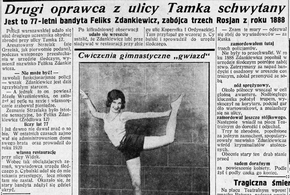 Zamordowaną była handlarka owocami z Powiśla, a Zdankiewiczowi udowodniono jedynie współudział w zbrodni i skazano na 3 lata odsiadki. Warszawska prasa podczas procesu tak opisywała tego „króla warszawskich złodziei i bandziorów”: