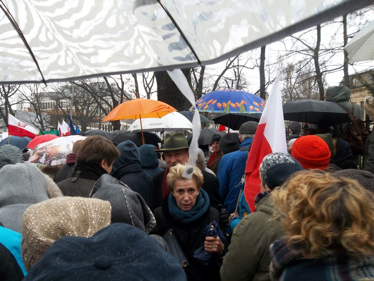 Manifestacja Obywatele dla demokracji ← Poprzednie Następne → Aleja Szucha, przez tłum przeciska się Vincent Rostkowski były minister finansów MPawlik