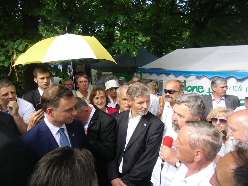 Wieś polska w Warszawie, czyli tak zwane „Zielone miasteczko” i przedstawiciele rolników różnych regionów, gościła dziś prezydenta elekta. Po odśpiewaniu hymnu, „sto lat” i pieśni religijnych, do Andrzeja Dudy zwracali się przedstawiciele rolniczych organizacji związkowych. Między innymi obecny był przewodniczący mazowieckich struktur NSZZ RI Solidarność – Stefan Szańkowski.