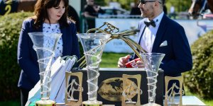 Zwycięskiego Silvera Bee udekorowała szarfą na padoku wdowa po śp. Tomaszu Dulu, pani Ewa Dul, w towarzystwie prezesa PKWK Tomasza Chalimoniuka.