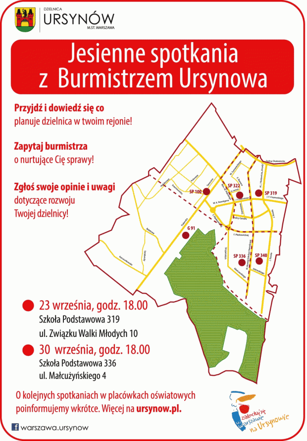 Jest to pierwsze z cyklu jesiennej tury spotkań z mieszkańcami. Kolejne zaplanowane spotkanie odbędzie się 30 września br. o godz. 18.00 w Szkole Podstawowej 336 przy ul. Małcużyńskiego 4.