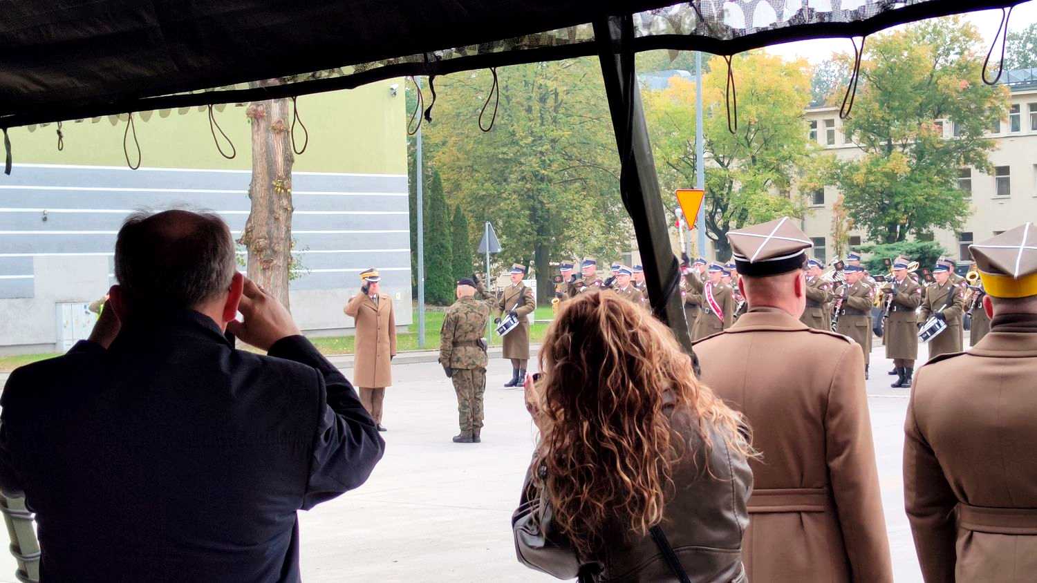 Dowódca 1. WBPanc. ← Poprzednie Następne → odbiera meldunek o gotowości od dowódcy uroczystości. Warszawa.pl