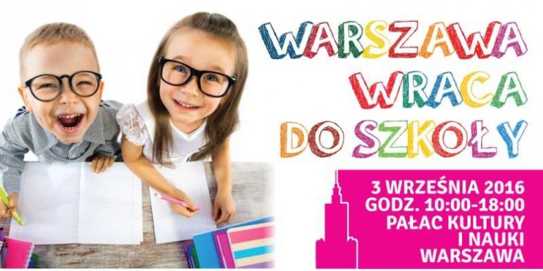 Warszawa wraca do szkoły/ Warsaw Back to School to całodzienna impreza pod tym hasłem, podczas której pożegnamy lato i powitamy nowy rok szkolny, odbędzie się w sobotę 3 września w Pałacu Kultury i Nauki. Tego dnia Pałac zamieni się w prawdziwy raj dla uczniów i przedszkolaków- organizatorzy przewidzieli mnóstwo atrakcji zarówno dla dzieci, jak i ich rodziców.