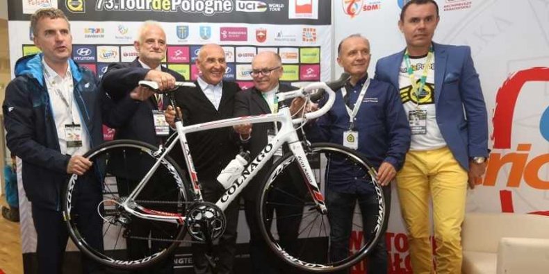 Dyrektor Tour de Pologne Czesław Lang przekazał dziś Caritas Polska specjalny rower Colnago w darze dla papieża Franciszka.